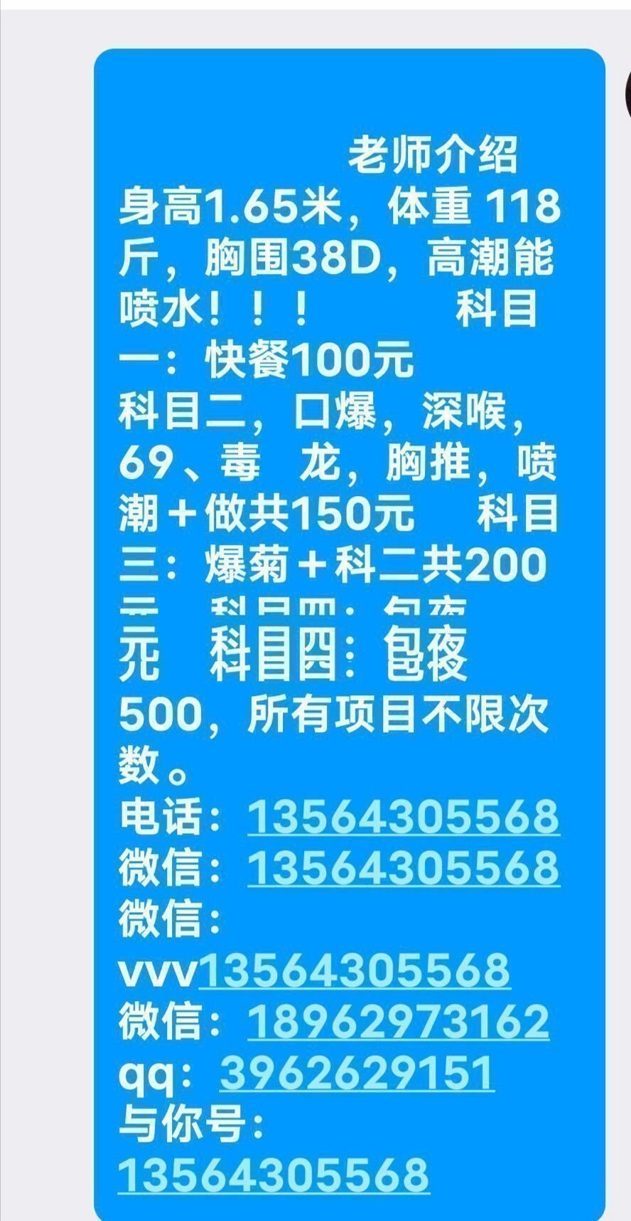 我听群里一个大哥说好像有性病,反正这种lcp给我钱我都不上,还3twt,真下的去吊,我有个哥们得了性病治疗花了大几千了,还没好呢,反正wt给勇敢的人