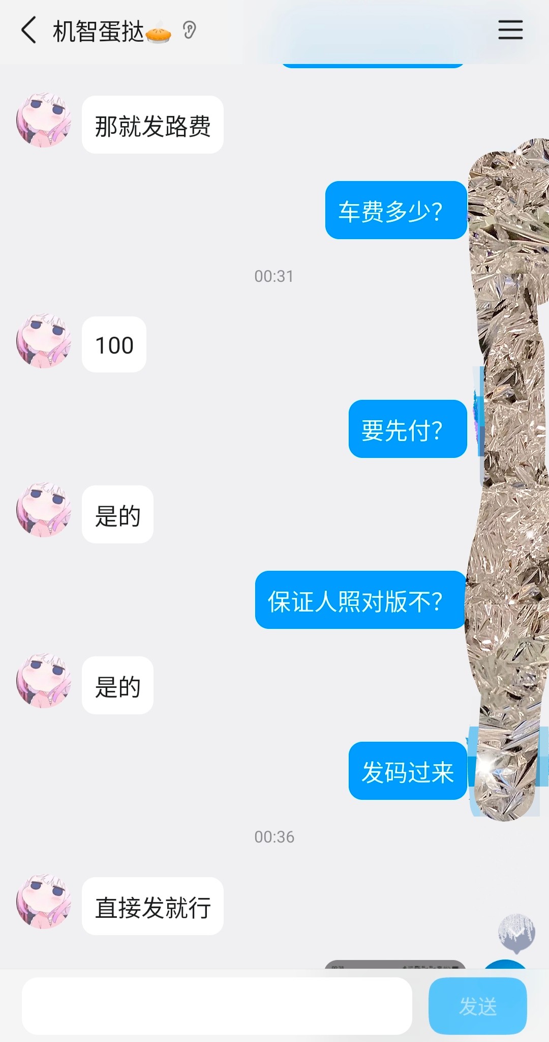 没想到如今的社会连100块钱都要用这样的渠道来骗,估计对方是个精神小妹,也不是说在乎这100,主要影响心情,给各位提个醒。
